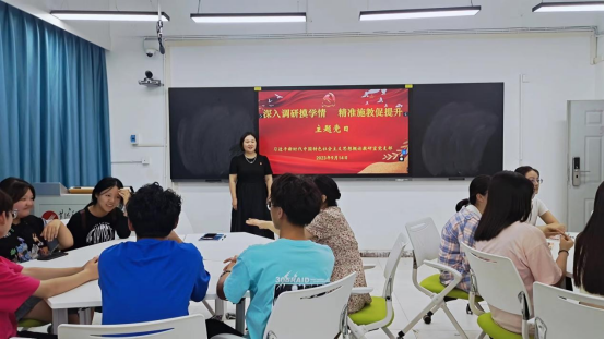 为深入推进习近平新时代中国特色社会主义思想和党的二十大精神进教材进课堂进头脑,按照beats365分党委统一部署和安排,9月14日,习近平新时代中国特色社会主义思想概论教研室党支部开展了“深入调研摸学情,精准施教促提升”主题党日活动。本次活动由党支部书记张海丽主持,党支部党员教师参加。