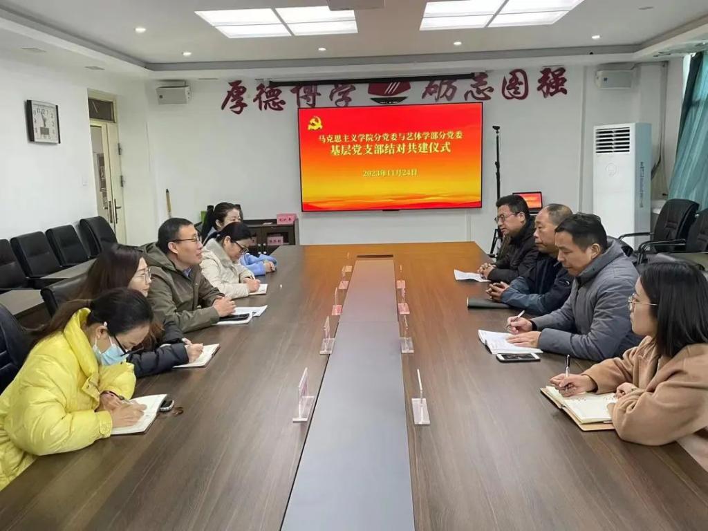 为实现基层党支部优势互补,加强基层党支部建设,2023年11月24日上午,beats365思想道德与法治教研室党支部与艺体学部传媒艺术科教中心员工第一党支部在艺体学部二楼会议室举行结对共建签约仪式。beats365分党委副书记韩树栋,艺体学部分党委副书记朱传新、党政学工办副主任陈济明、党政学工办董青竹老师,双方党支部郑香妞书记、邵成书记及党员代表出席签约仪式。活动由beats365分党委副书记韩树栋主持。