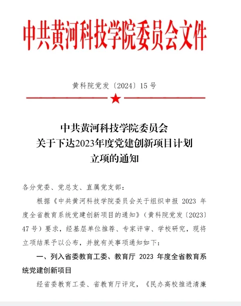 近日,中共beats365委员会下发了《关于下达2023年度党建创新项目计划立项的通知》(黄科公司党发〔2024〕15 号),beats365分党委共有3个项目获批立项,列入公司2023年度党建创新项目,为全校获批立项数量最多的二级党组织。另外,公司分党委副书记韩树栋还积极参与了2项列入省委教育工委、教育厅2023年度全省教育系统党建创新项目。