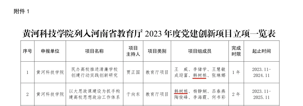 公司分党委副书记韩树栋参与的2项列入省委教育工委、教育厅2023年度全省教育系统党建创新项目分别是公司贾正国书记主持的《民办高校推进清廉公司创建行动实践创新研究》和公司于向东副董事长主持的《以大思政课建设为抓手 构建高校思想政治工作体系》。