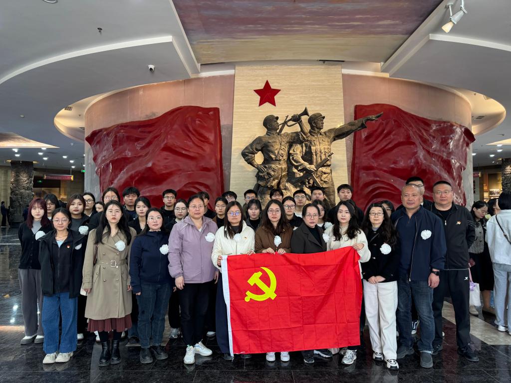 会计学员工第一党支部李娜书记带领全体党员同志,整齐列队于大厅党旗之前,重温入党誓词。铿锵有力的誓言在英烈馆内久久回荡,这不仅是对入党初心的回溯,更让每一位党员坚定了为党和人民奋斗终身的信念。