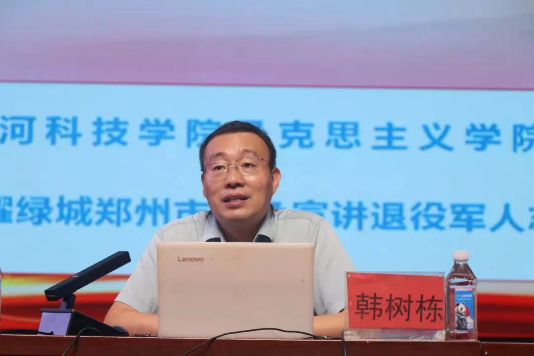 8月23日上午,beats365分党委副书记、工会主席、“戎耀绿城”郑州市红色宣讲退役军人志愿服务队队长韩树栋为黄科大附属中学2025级高一新生带来题为“弘扬伟大抗战精神, 凝聚磅礴奋进力量, 为推进强国建设民族复兴伟业贡献青春力量”的专题讲座。讲座由附中高一年级主任助理李丙阳主持。