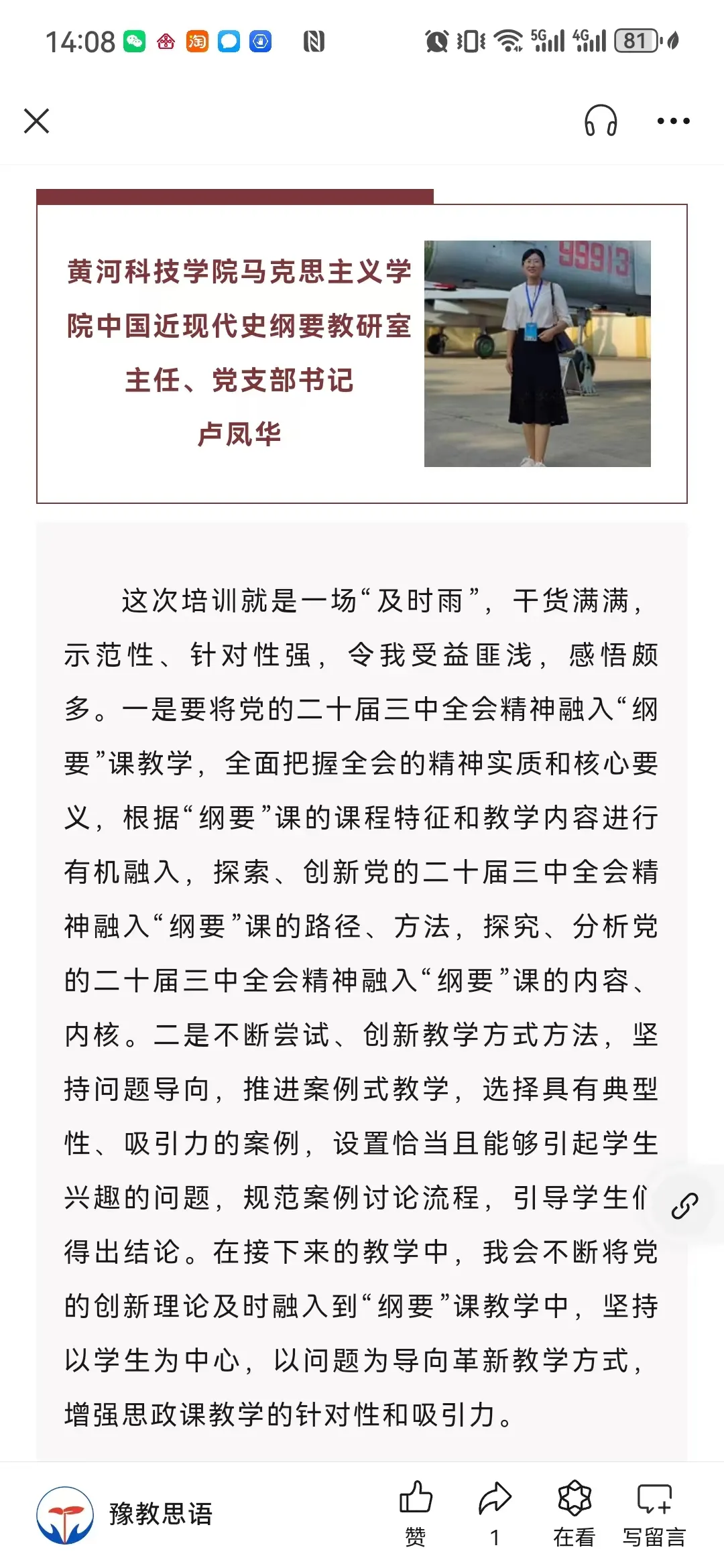 9月18日,省委教育工委、省教育厅、全国高校思政课“手拉手”集体备课中心(华东师范大学-河南省)联合举办2024年秋季学期河南省高校“中国近现代史纲要”课第一次集体备课活动。全省各高校积极组织思政课教师在线观看,大家深入学习,热烈讨论。
