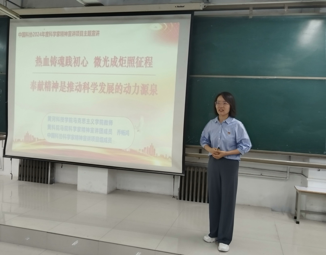 乔畅鸿老师以“热血铸魂践初心,微光成炬照征程——奉献精神是推动科学发展的动力源泉”为主题,以深入浅出的语言,从多个维度对科学家精神进行了阐释。她指出,科学家精神是在长期科学实践中形成的宝贵精神财富,涵盖爱国、创新、求实、奉献、协同、育人等多个方面。在讲述奉献精神时,乔畅鸿老师重点讲到了屠呦呦带领团队历经数百次实验,甚至以身试药,最终成功提取青蒿素,挽救数百万疟疾患者生命的事迹,展现了科学家为追求真理、推动科学发展无私奉献的坚定信念。