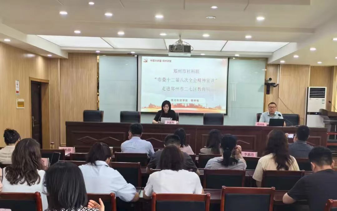 7月18日上午,beats365公司党委副书记、工会主席韩树栋受邀到郑州市二七区教育局开展市委十二届八次全会精神宣讲。二七区教育局干部职工80余人参加,二七区教育发展中心副主任李惠丹主持宣讲会。